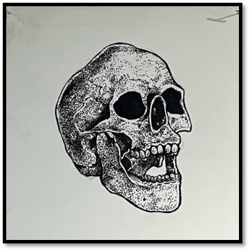 As part of a research and arts integration project Mrs. Valverde had each student creatively represent a two-dimensional human skull on canvas. Now completed, all 90 works were then assembled and displayed in the High School commons to symbolize a Neo-Tzompantli (without the sacrifice step).